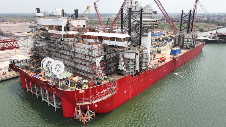 BROWNSVILLE, Texas — The United States is producing less than 1% of the wind power it wants to generate by 2030. But an enormous boat promising to change that is about 89% built, and when it’s done next year, the real race to catch up begins.